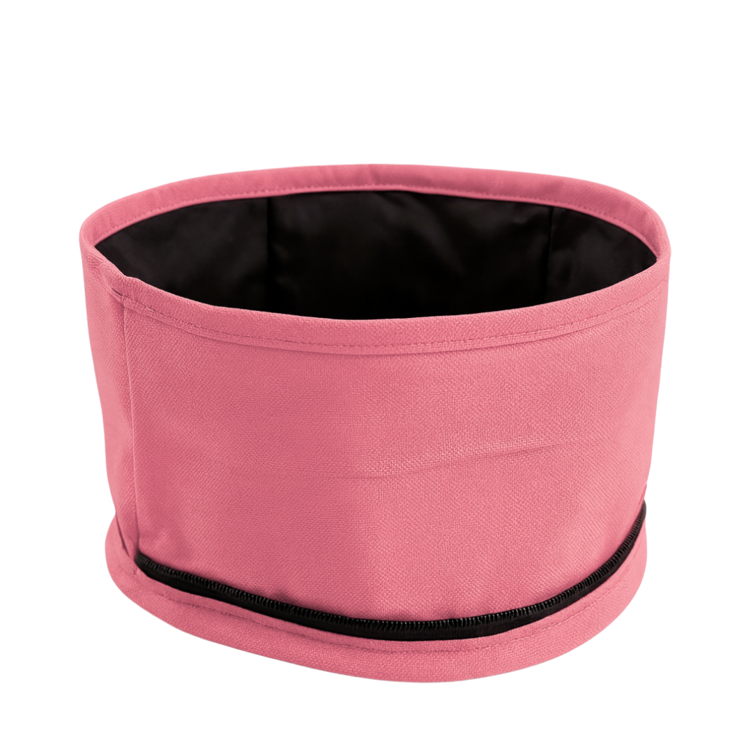 Está elaborado en lona impermeable de alta resistencia, fácil de limpiar y capaz de contener líquidos por más tiempo sin filtraciones. Su sistema plegable con cremallera y mosquetón incorporado te permite colgarlo del paseador, de tu pantalón o mochila, manteniéndolo siempre a la mano. Ideal para no cargar con tazas pesadas o botellas incómodas