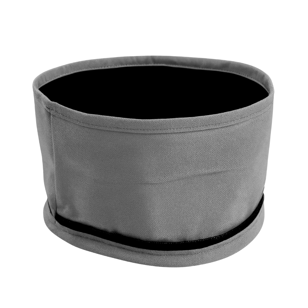 Está elaborado en lona impermeable de alta resistencia, fácil de limpiar y capaz de contener líquidos por más tiempo sin filtraciones. Su sistema plegable con cremallera y mosquetón incorporado te permite colgarlo del paseador, de tu pantalón o mochila, manteniéndolo siempre a la mano. Ideal para no cargar con tazas pesadas o botellas incómodas