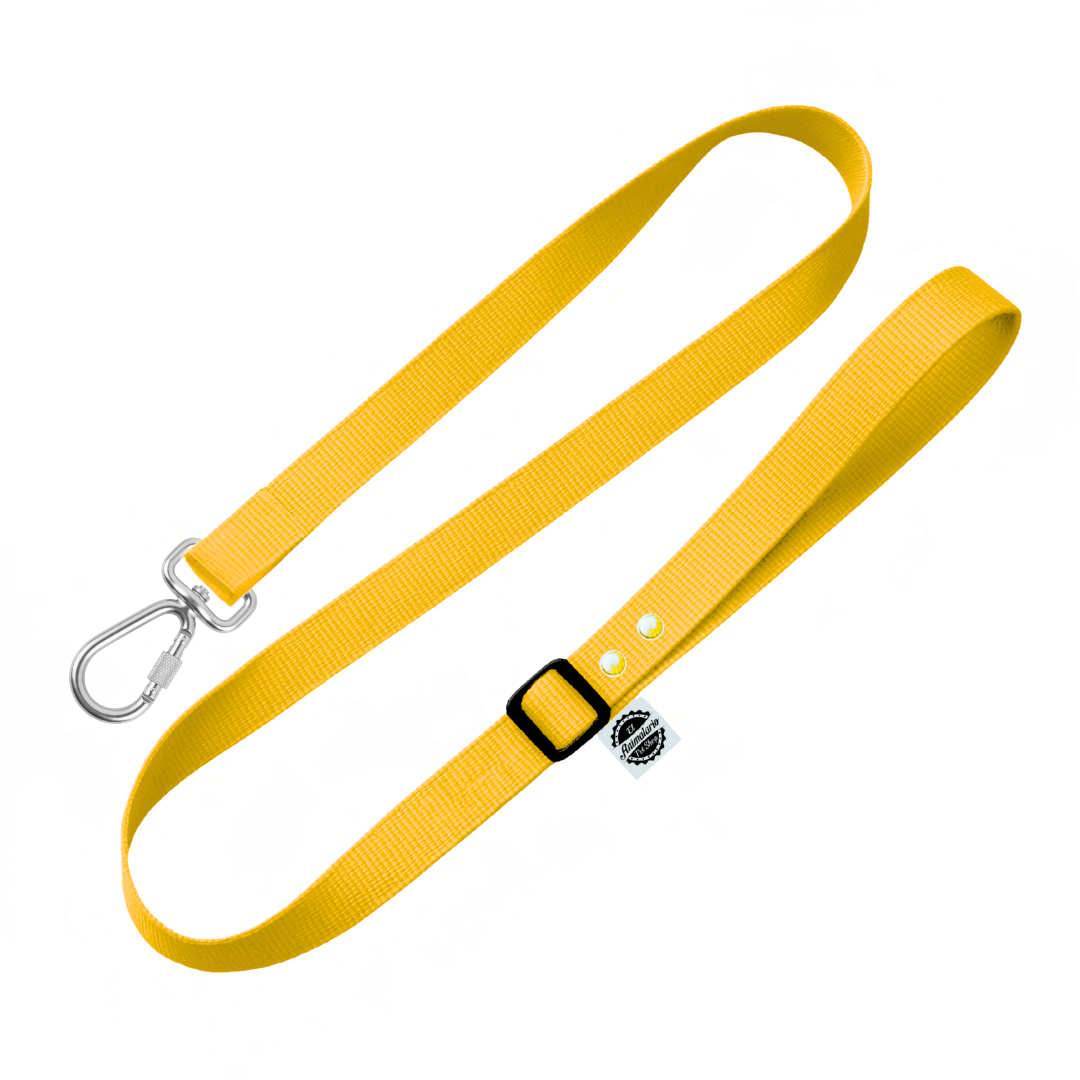 Su gran diferencial está en el mosquetón tipo alpinista, un herraje de seguridad que se cierra manualmente, capaz de soportar grandes pesos y mantener el control incluso con perros fuertes. Además, en los puntos de mayor presión no cosemos: remachamos, garantizando resistencia superior.